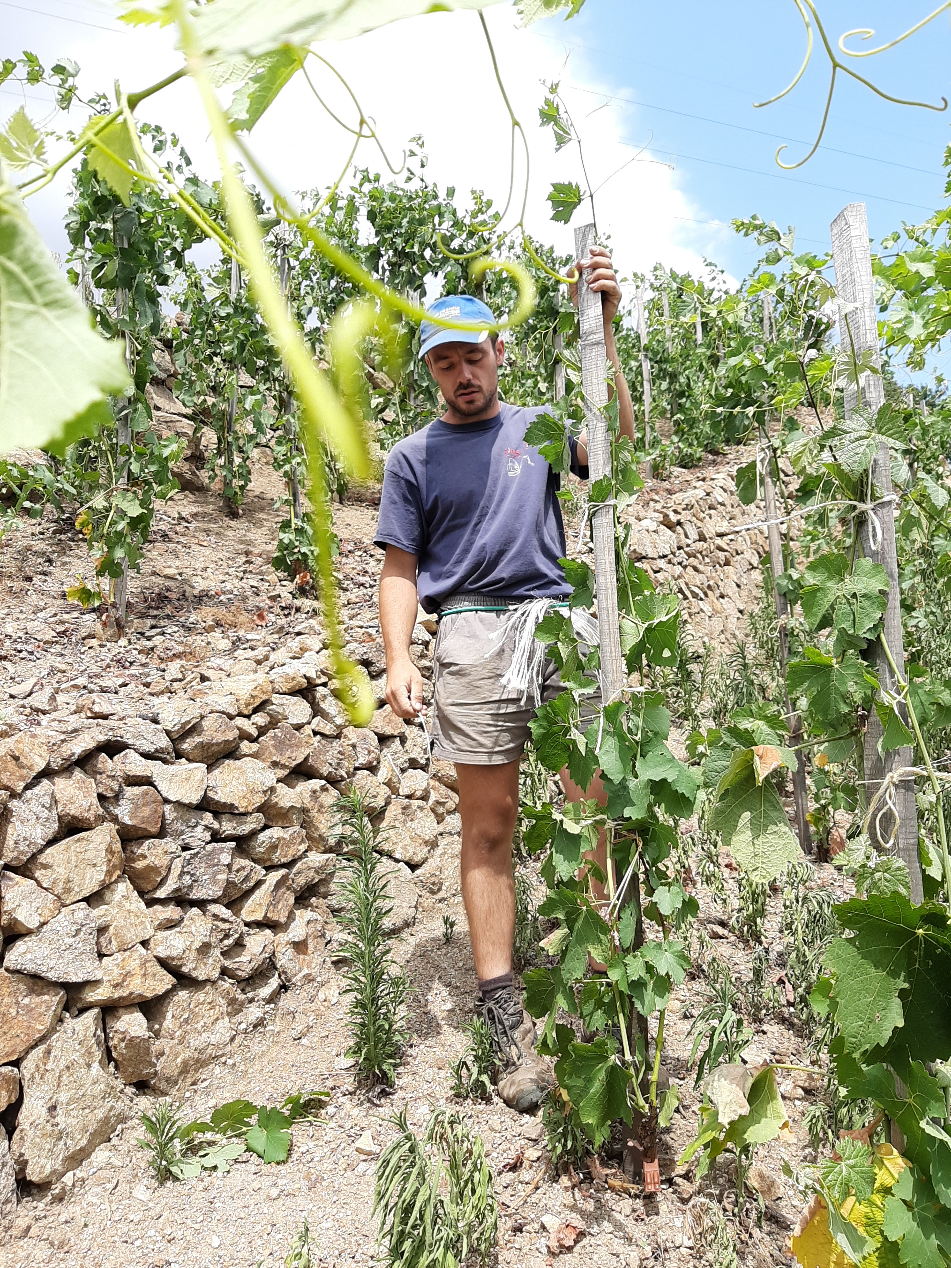 Parallèlement à l’activité au sein du domaine, Nicolas a créé son entreprise de services aux vignerons. Spécialisé dans le terrassement et la régénération des sols pour la pérennité du vignoble, il réalise des murs en pierre sèche contre l’érosion, des bêchages pour favoriser l’enracinement et la mise en place d’engrais verts.